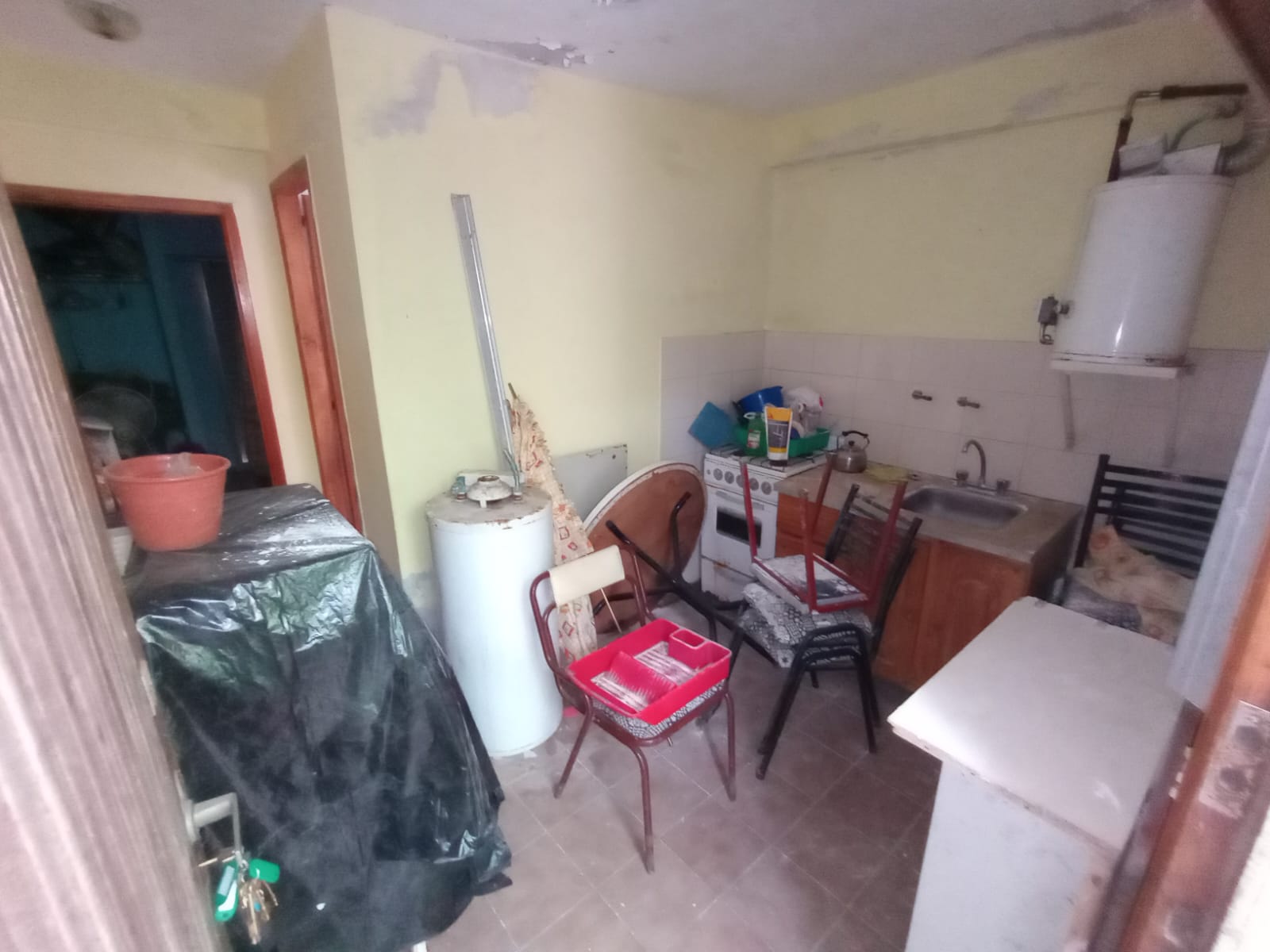 La propiedad se encuentra en un estado que requiere reciclaje y renovación, lo que ofrece la oportunidad de personalizar el espacio según tus necesidades.
